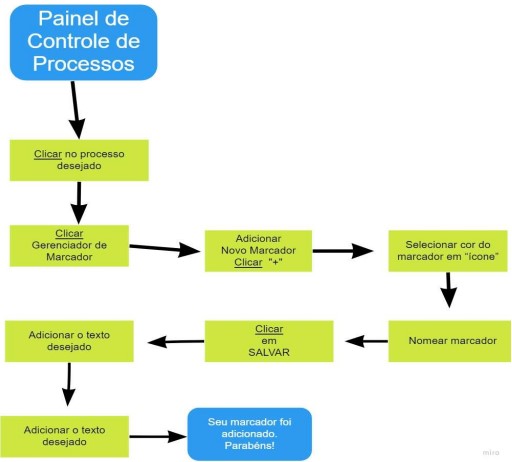 > Clicar no processo desejado > Clicar em Gerenciar marcador > Adicionar Novo Marcador> Clicar no ícone